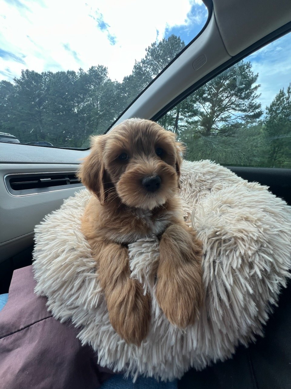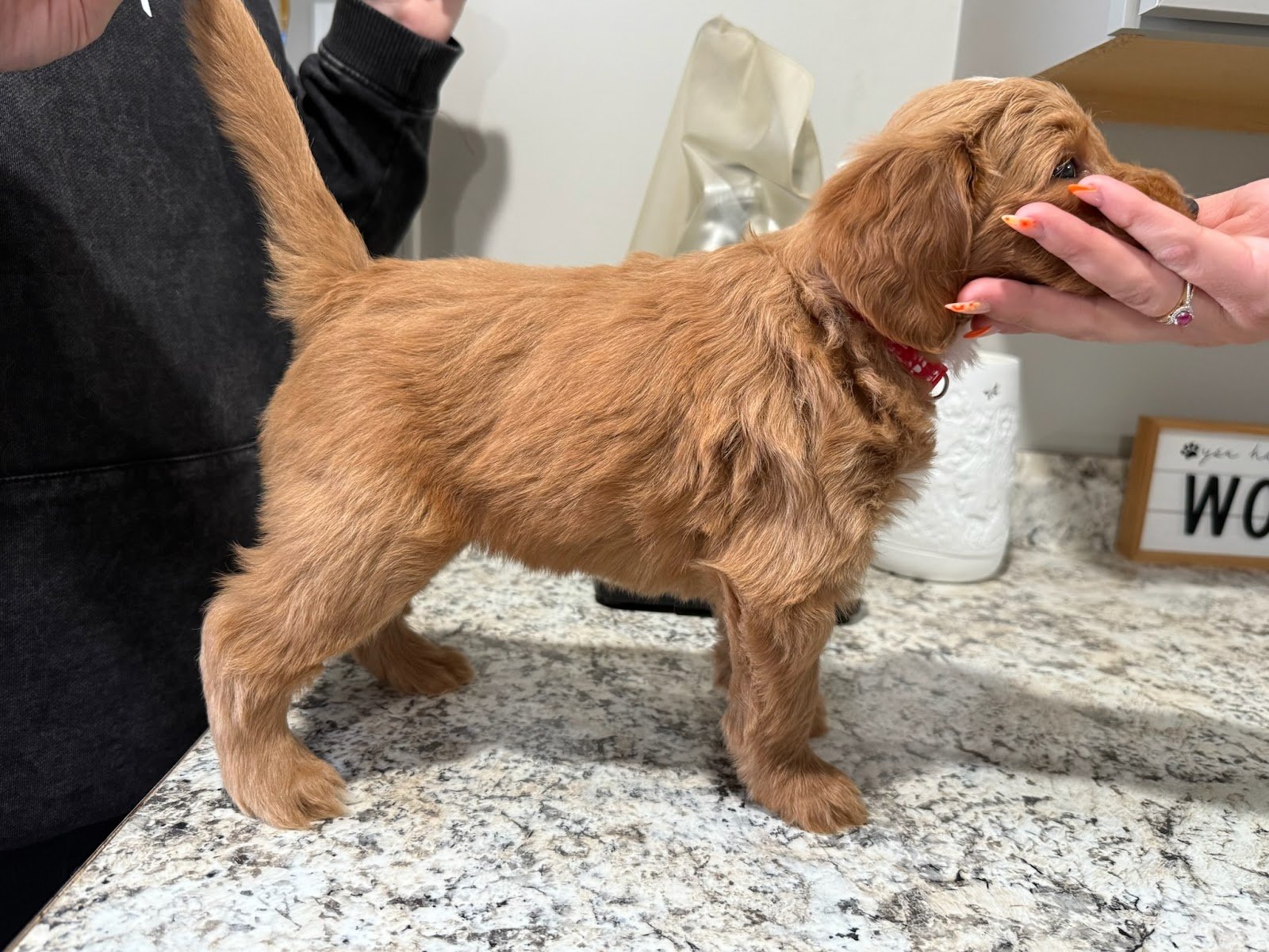 We’re proud to introduce Rubee, one of the newest members of our family. Born on February 27nd, 2025, Rubee is a charming Mini Goldendoodle with soft, wavy hair — a beautiful feature she’s sure to pass on to her future puppies.